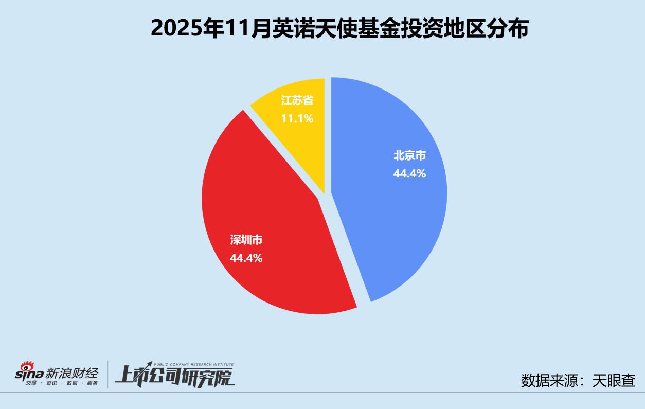 统计区间内,英诺天使基金公开披露的股权投资事件共9起,与10月相比增长50.0%,较2024年同期翻了3倍。往期数据显示,英诺天使基金作为早期机构投资事件数多数维持在3起上下,节奏相对平稳、偏谨慎。但2025年9-11月,机构投资量持续攀升,反映出优质项目集中释放或资金端加速落地。